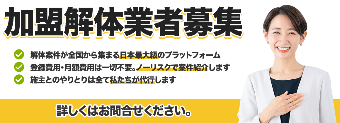 - 解体工事以外の相続・不用品・土地活用なども全て無料でご相談可能